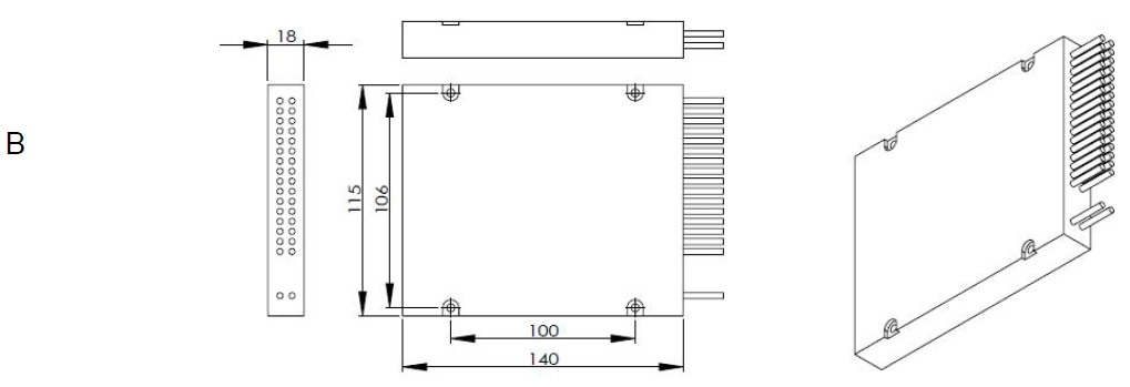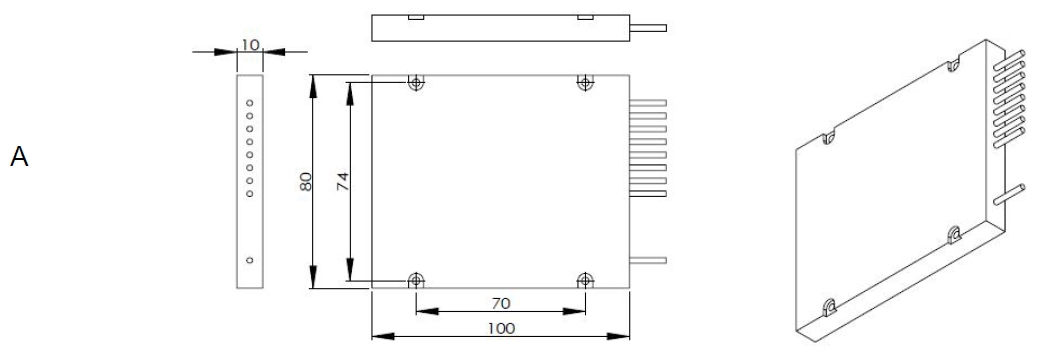Упаковка для размера А: ABS-коробка размером 100x80x10 мм для CWDM менее 10 каналов, модуль Mux+Demux из 2 штук упакованы вместе.
