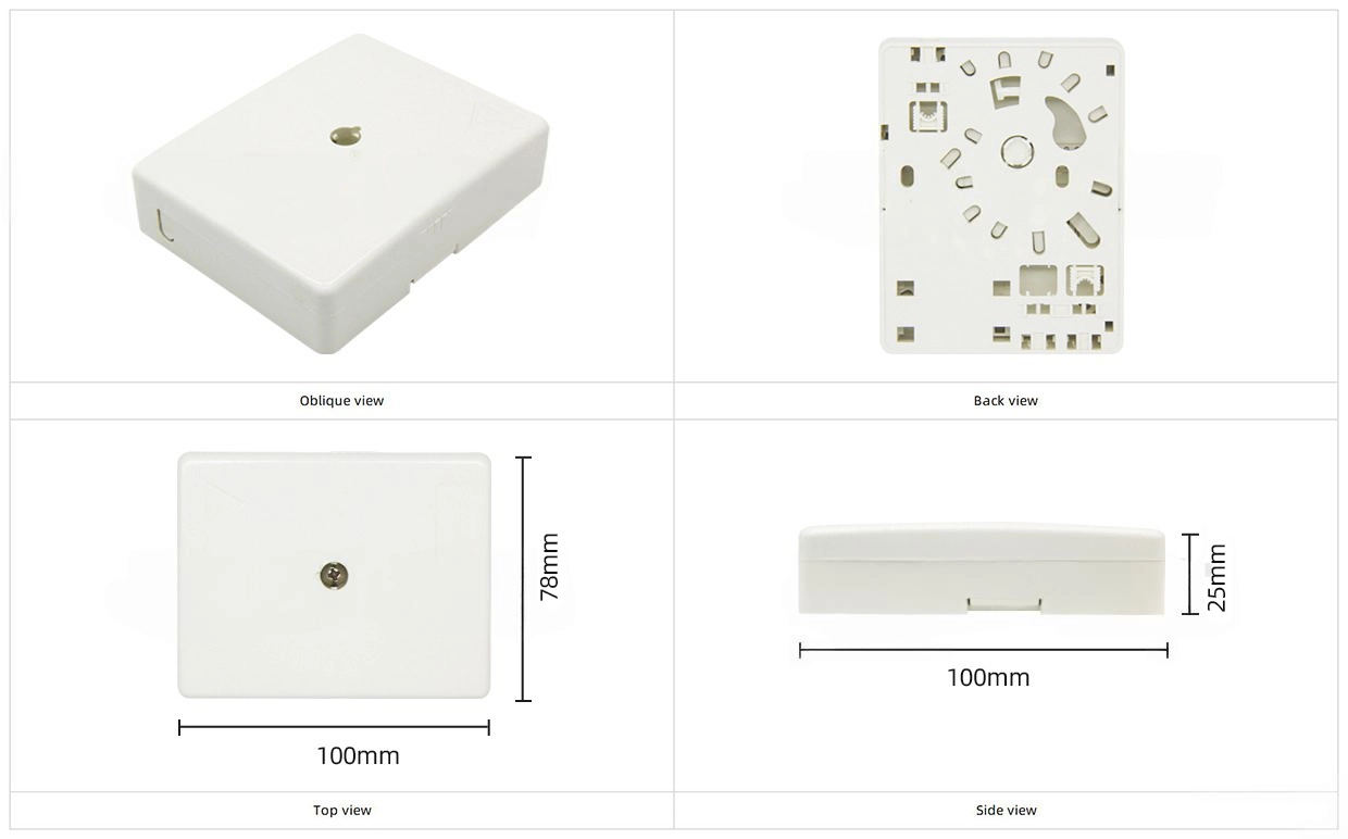 Оконечная коробка предназначена для проектов FTTH (волокно до дома) и может быть установлена как на столе, так и на стене. Она выполняет функции оптического сплайсинга, хранения и подключения патч-кордов.