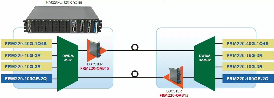 - Одноканальний EDFA з керуванням шасі стійки FRM220