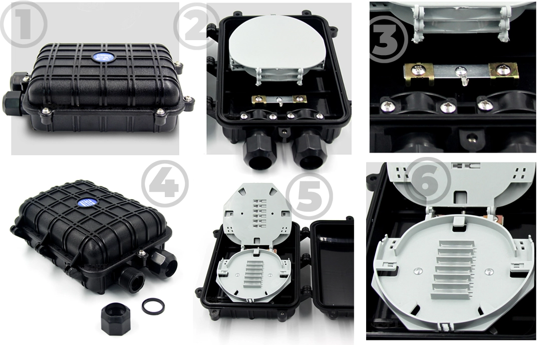 Один кабельний вхід і один кабельний провід на нижній стороні муфти. Всередині знаходиться пристрій для фіксації оптичного кабелю, зручний для закріплення оптичного кабелю.