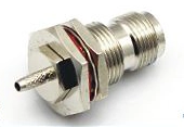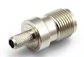 Це обжимний TNC-роз'єм типу "мама" для панельного монтажу, призначений для кабелю RG174. Дозволяє закріпити TNC-з'єднання в панелі та підключити кабель RG174 за допомогою обжиму. | Це перехідник, що має TNC-роз'єм типу "мама" для панельного монтажу з одного боку та TNC-роз'єм типу "мама" з іншого. Використовується для з'єднання двох TNC-роз'ємів типу "тато" крізь панель. | Це обжимний TNC-роз'єм типу "мама" для кабелю RG58U. Забезпечує надійне обжимне з'єднання кабелю RG58U з обладнанням, що має TNC-роз'єм. |