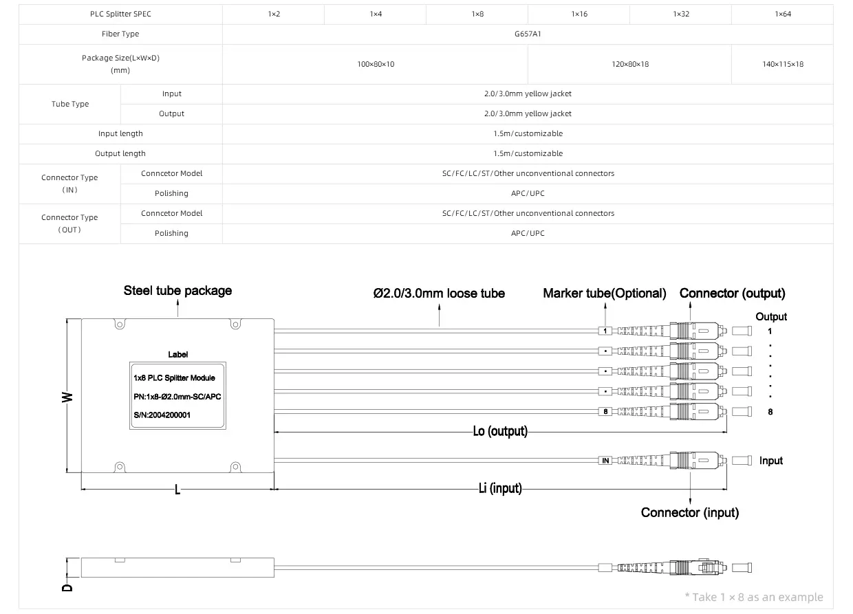 Оптоволоконный PLC-сплиттер представляет собой интегрированное волноводное устройство распределения оптической мощности на основе кварцевой подложки, которое особенно подходит для подключения оконечного оборудования в сети PON и разделения оптической информации в оптоволоконной системе связи на несколько выходов.